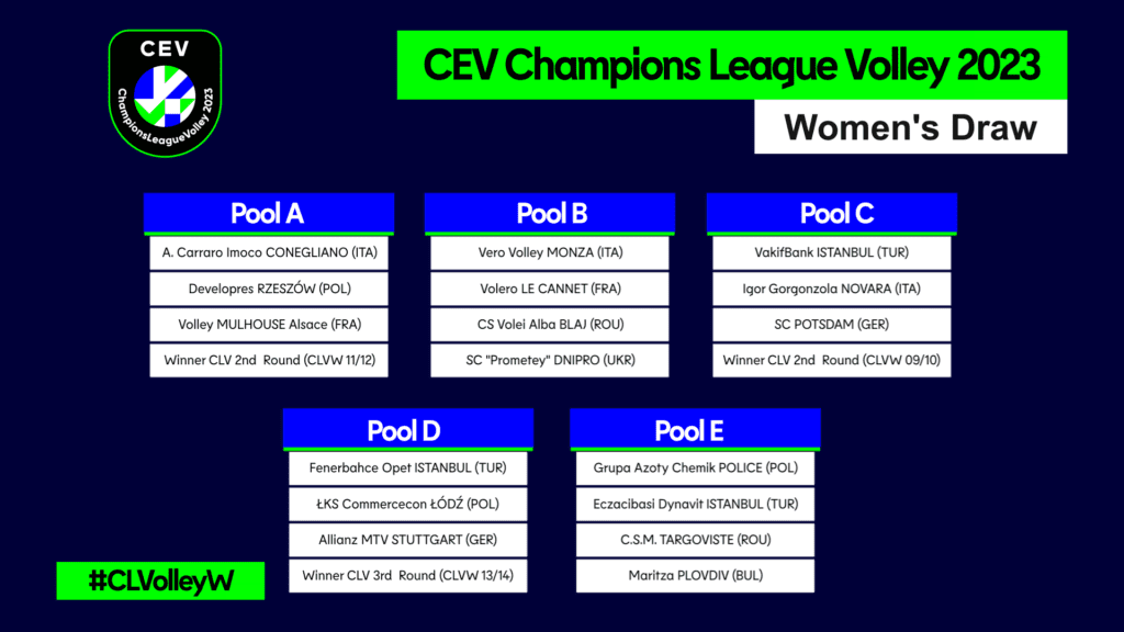 Fostă finalistă a competiției în 2018, Volei Alba Blaj va face parte din grupa B, alături de echipa italiană Vero Volley Monza, cea franceză Volero le Cannet și de formația ucraineană SC ”Prometey” Dnipro.