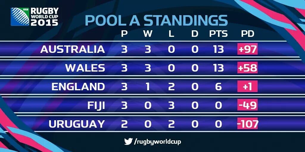 Campioana mondială din 2003, Anglia, a pierdut în această seară in fata Australiei cu scorul de 33-13, astfel nu mai are nici o şansă de calificare în sferturile de finală ale Cupei Mondiale de rugby, competiţe a cărei gazdă este.