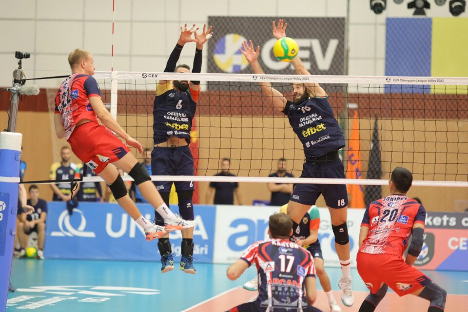 Arcada Galaţi a fost învinsă de campioana Bulgariei, Hebăr Pazardjik cu scorul de 3-1, care apoi s-a impus în ”setul de aur” cu 15-10, miercuri seara, la Galaţi, în manşa secundă din turul al doilea preliminar al Ligii Campionilor la volei masculin.