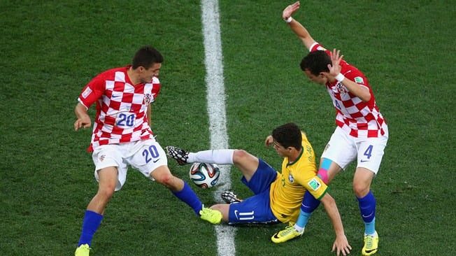 Jucătorii croaţi au protestat vehement după decizia arbitrului japonez Yuichi Nishimura de a acorda penalti la un duel în careu între Lovren şi Fred. Croaţii au considerat că penaltiul a fost acordat mult prea uşor.