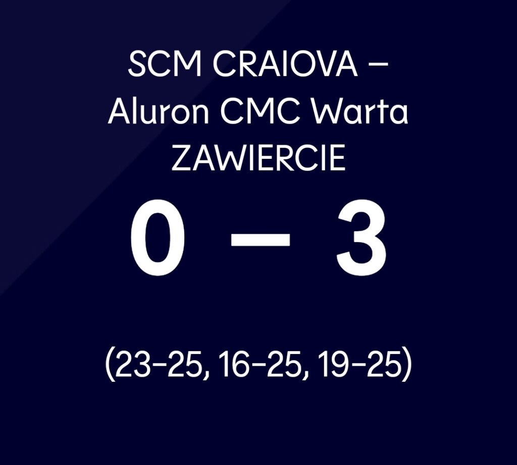 SCM Craiova a fost eliminată din Cupa CEV de echipa poloneză Aluron Warta Zawiercie, care s-a impus în trei seturi, joi seara, în Bănie, în manşa secundă a optimilor de finală.