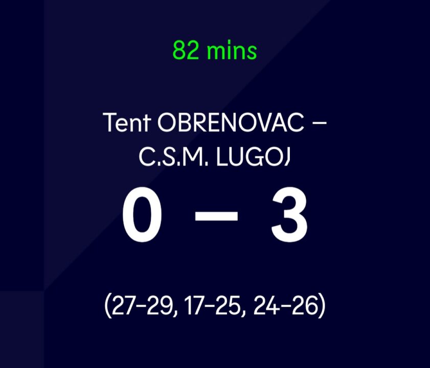 CSM Lugoj a învins-o pe Tent Obrenovac în trei seturi, joi seara, în deplasare, în prima manşă a optimilor de finală ale Cupei Challenge la volei feminin.