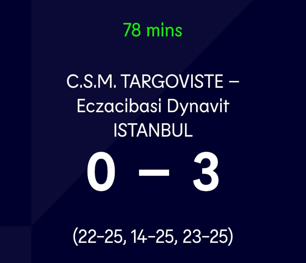 CSM Târgovişte – Eczacibaşi 0-3 (22:25,14:25, 23:25)