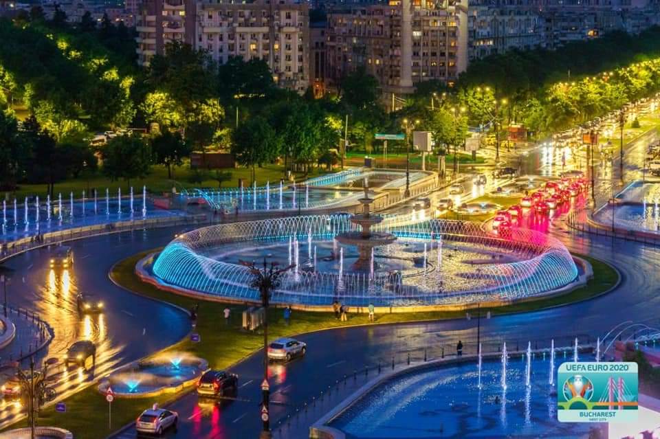 Vineri, 11 iunie, între orele 21:00-23:00, Bucureștiul a celebrat deschiderea Turneului Final al Campionatului European de Fotbal EURO 2020 prin proiecții de 3D video mapping și lumini arhitecturale pe fațada centrală a Palatului Parlamentului, evenimentul „Bucharest, celebrating football”, parte a activității Host City Spectacular, fiind organizat de Primăria Capitalei, prin CREART – Centrul de Creație, Artă și Tradiție al Municipiului București. În contextul epidemiologic actual, proiecțiile au fost create pentru a fi ulterior difuzate atât în online, cât și în celelalte Orașe Gazdă. Simultan, între 21:30-21:40, a avut loc un „dans” al Fântânilor Urbane din Piața Unirii, moment care a fost construit în jurul simbolisticii UEFA.