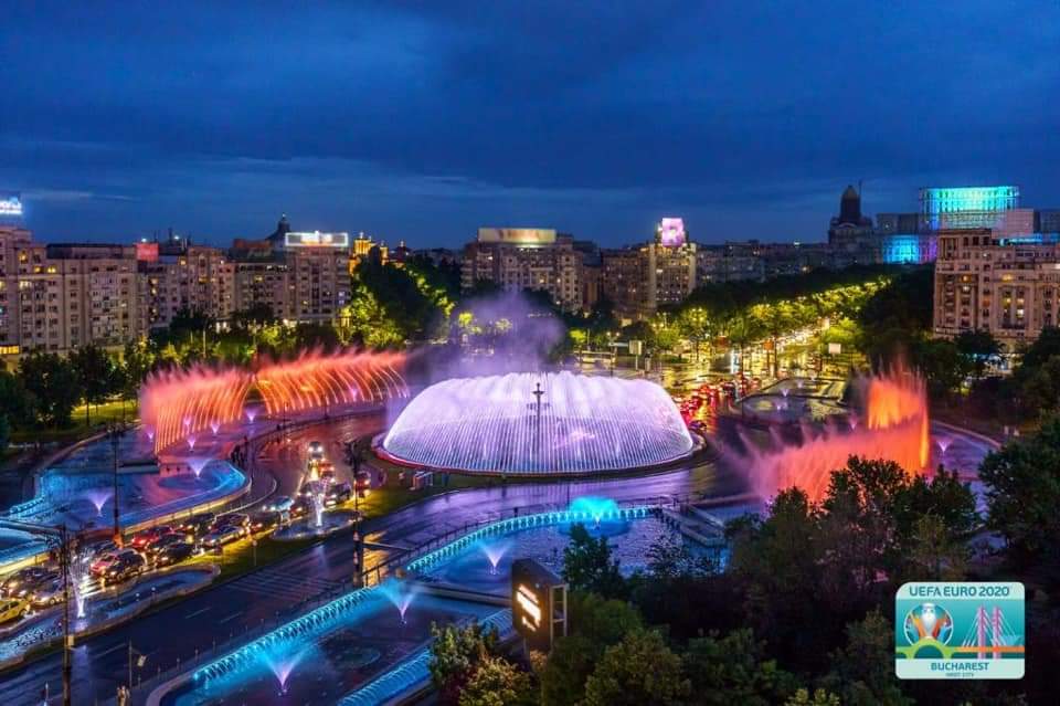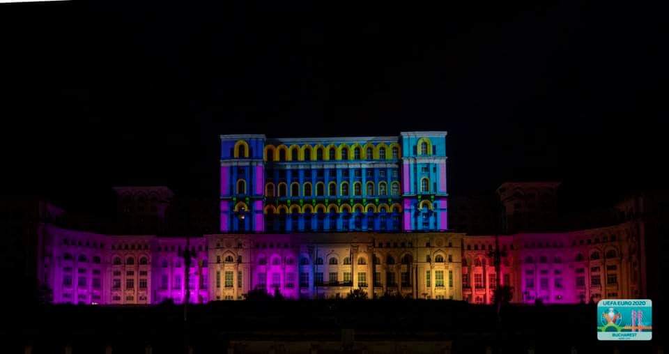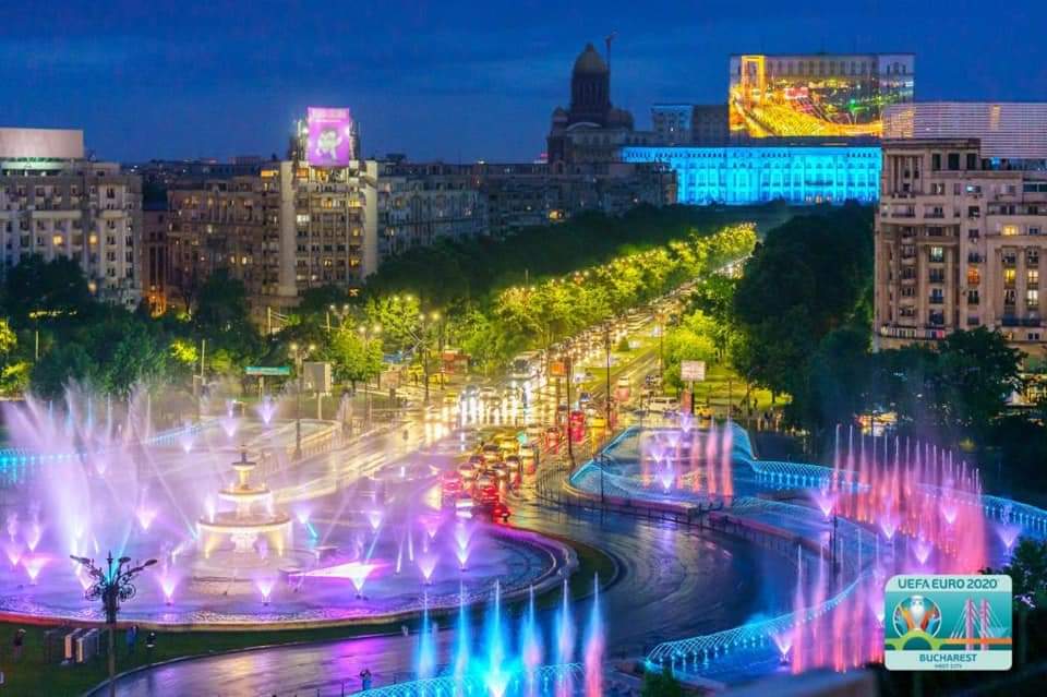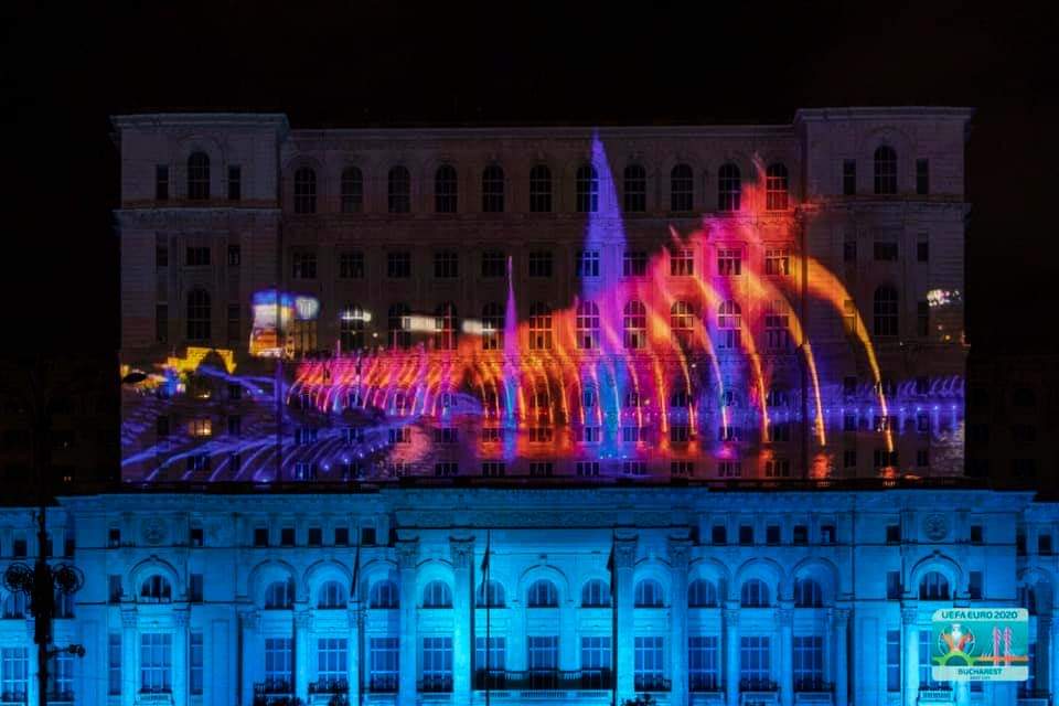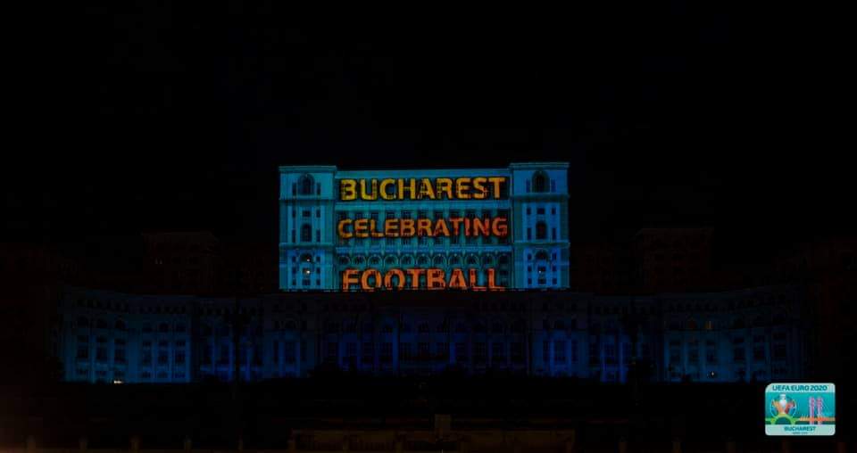 Vineri, 11 iunie, între orele 21:00-23:00, Bucureștiul a celebrat deschiderea Turneului Final al Campionatului European de Fotbal EURO 2020 prin proiecții de 3D video mapping și lumini arhitecturale pe fațada centrală a Palatului Parlamentului, evenimentul „Bucharest, celebrating football”, parte a activității Host City Spectacular, fiind organizat de Primăria Capitalei, prin CREART – Centrul de Creație, Artă și Tradiție al Municipiului București. În contextul epidemiologic actual, proiecțiile au fost create pentru a fi ulterior difuzate atât în online, cât și în celelalte Orașe Gazdă. Simultan, între 21:30-21:40, a avut loc un „dans” al Fântânilor Urbane din Piața Unirii, moment care a fost construit în jurul simbolisticii UEFA.