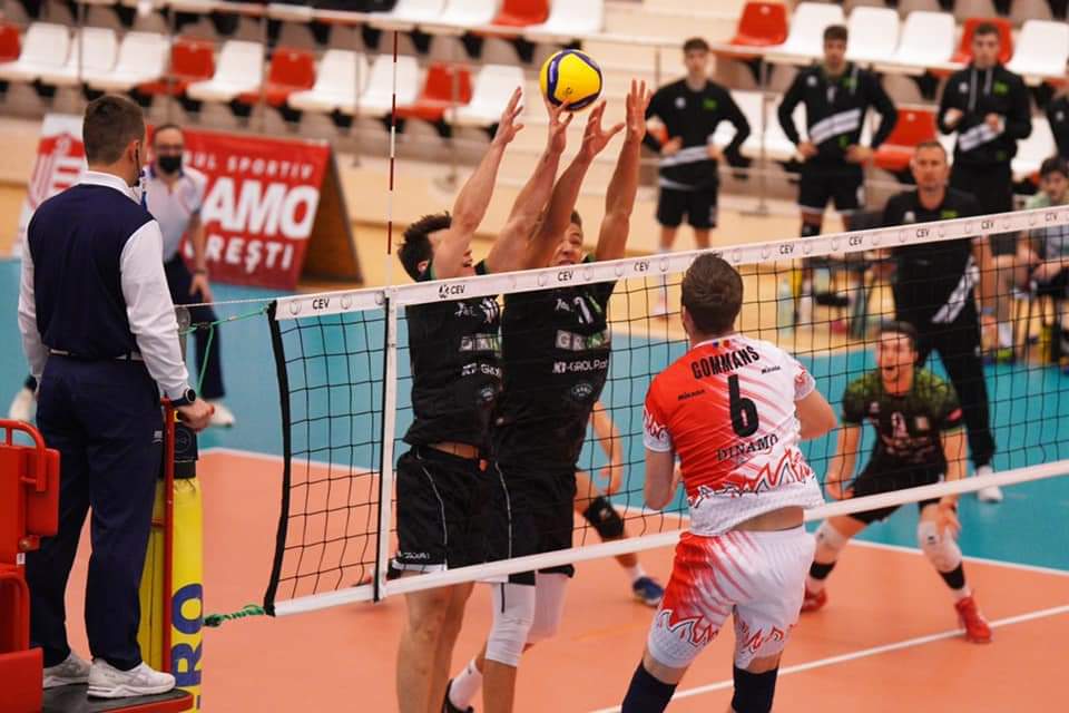 În prima manşă Dinamo a câştigat cu 3-1 la Graz, s-a impus după o oră şi 29 de minute în sala proprie, după ce a pierdut primul set.