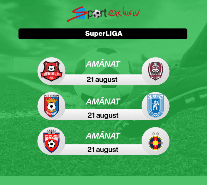 Astfel, meciurile FC Hermannstadt – CFR 1907 Cluj, AFC Chindia Târgoviște – Universitatea Craiova și FC Botoșani – FCSB, care urmau să se dispute duminică, 21 august, vor fi reprogramate la date și ore care va fi comunicate ulterior, cel mai probabil în intervalul 24-25 septembrie.