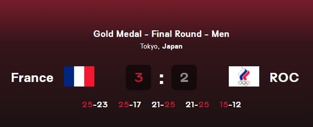 Franța a învins echipa olimpică a Rusiei cu 3-2 și câștigă aurul olimpic la volei masculin după un meci senzanțional disputat în Arena d’Ariak din Tokyo.