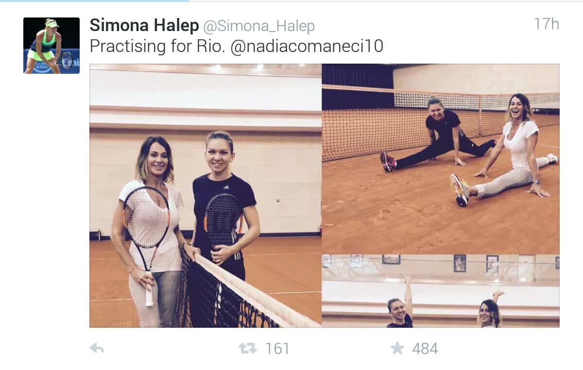 Simona Halep a intitulat colajul foto „Antrenîndu-ne pentru Rio”, în timp ce Nadia Comăneci a scris: „Puțin tenis și puțină gimnastică împreună cu inconfundabila Simona Halep”.