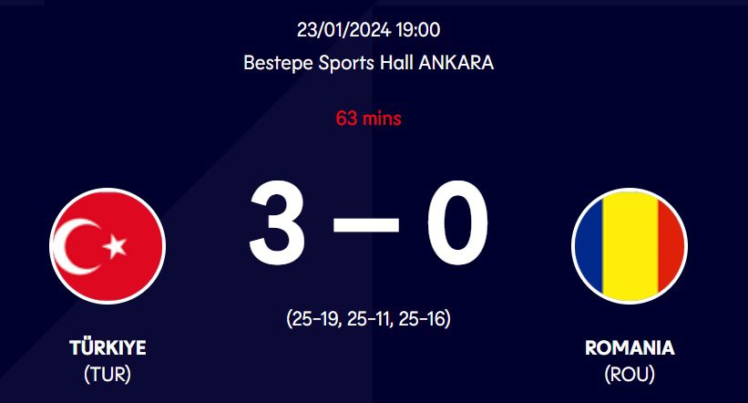 Selecţionata României a fost învinsă de formaţia Turciei cu scorul de 3-0, marţi, la Ankara, într-un meci din Grupa A a preliminariilor balcanice pentru Campionatul European de volei feminin Under-20.