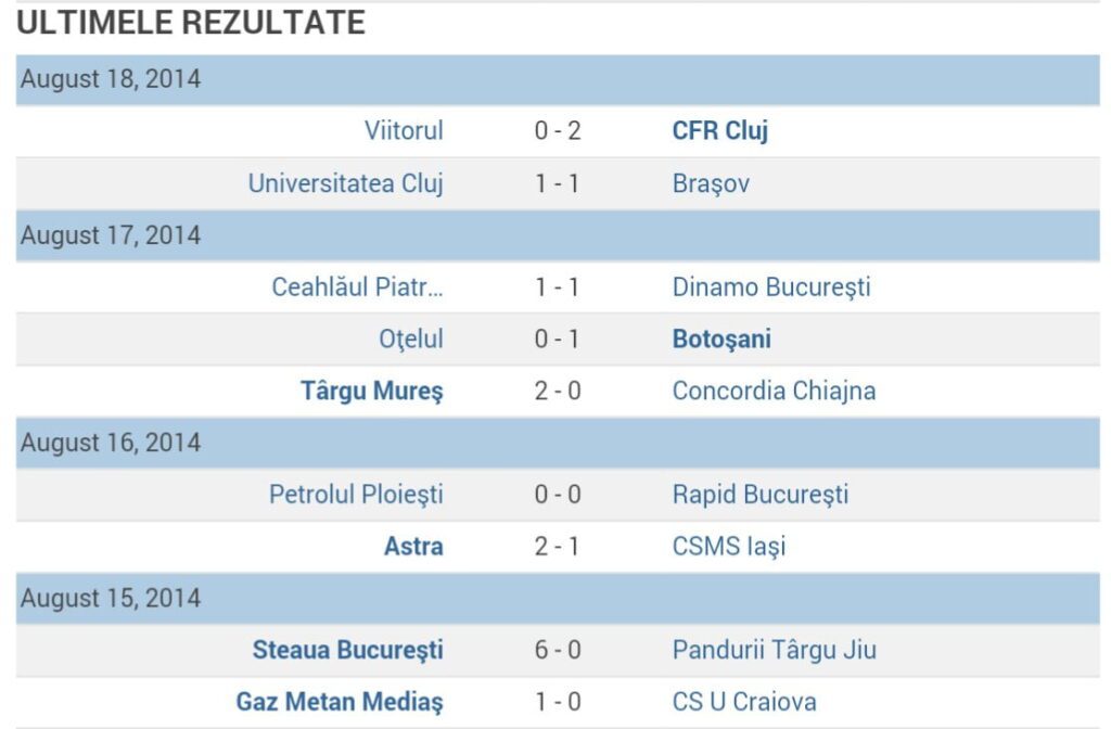 Rezultate înregistrate în partidele disputate, vineri, sâmbătă, duminică şi luni, în etapa a patra a Ligi I şi clasamentul competiţiei.