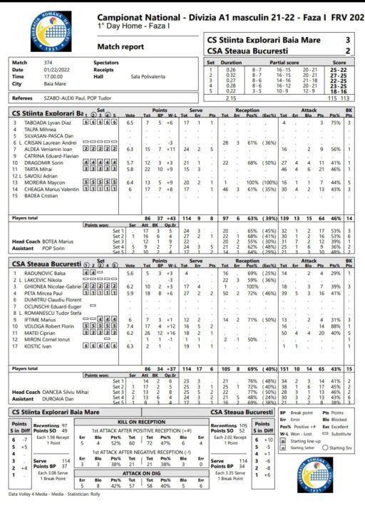 Știința Explorări Baia Mare a câștigat duelul din cadrul rundei a XIII-a după cinci seturi, sâmbătă seara, în Sala „Lascăr Pană”. Pe finalul setului cinci gazdele au fost mai exacte și au reușit să învingă o echipă mai valoroasă după două ore și 15 minute de joc.