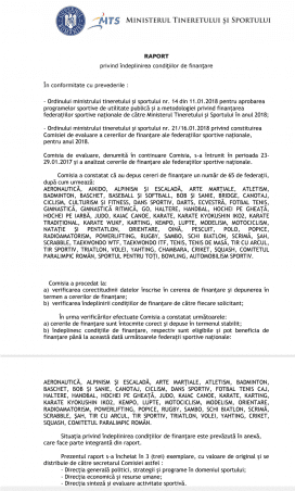 Ministerul Tineretului şi Sportului a anunţat pe site-ul oficial concluziile comisiei care au analizat cererile de finanţare depuse de federaţiile sportive naţionale.