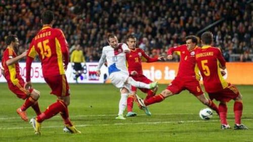 Romania a fost invinsa in deplasare, pe Amsterdam Arena, cu scorul de 4-0 (1-0), de reprezentativa Olandei, intr-un meci din grupa D a preliminariilor Cupei Mondiale din 2014.