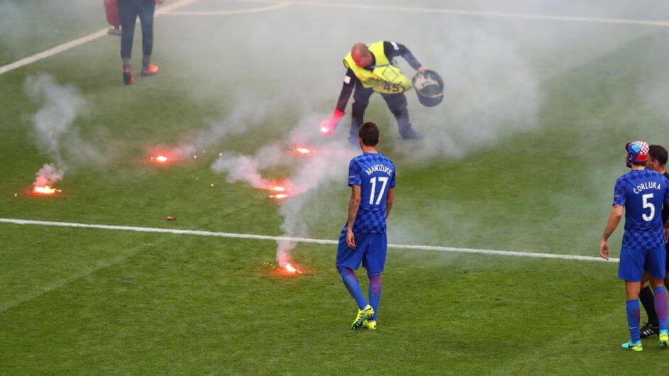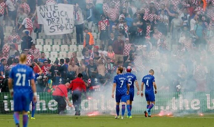La meciul disputat la Nisa între Croația și Cehia, scor 2-2, suporteri ai echipei Cehe au aruncat petarde si fumigene pe teren in minutul 86′ la scorul de 2-1 pentru Croati una dintre ele căzând periculos de aproape de un steward care încerca să le scoată de pe teren.