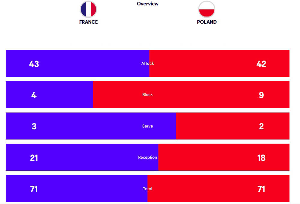 Wilfredo Leon a fost cel mai bun jucător al meciului, cu 18 puncte. La fileu Polonezi au fost mai buni reușind să blocheze de 9 ori în timp ce gazdele au blocat doar de 4 ori.