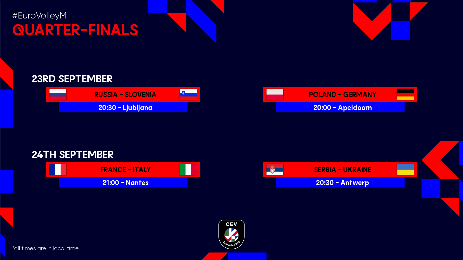 Programul sferturilor de finală: