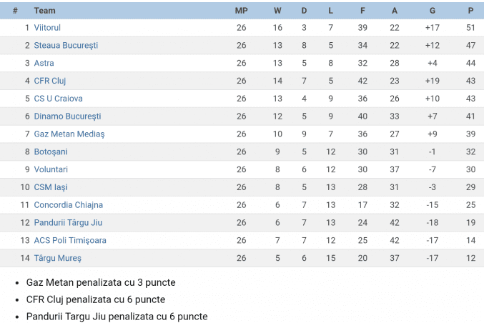 Astra a terminat pe locul al treilea după 8 victorii consecutive cu 44 de puncte, după ce s-a impus cu 3-0 in fata echipei FC Botoșani. După acest ultim rezultat ştim clasamentul Ligii 1 și cele șase echipe care de vor lupta pentru titlu de Campioană.