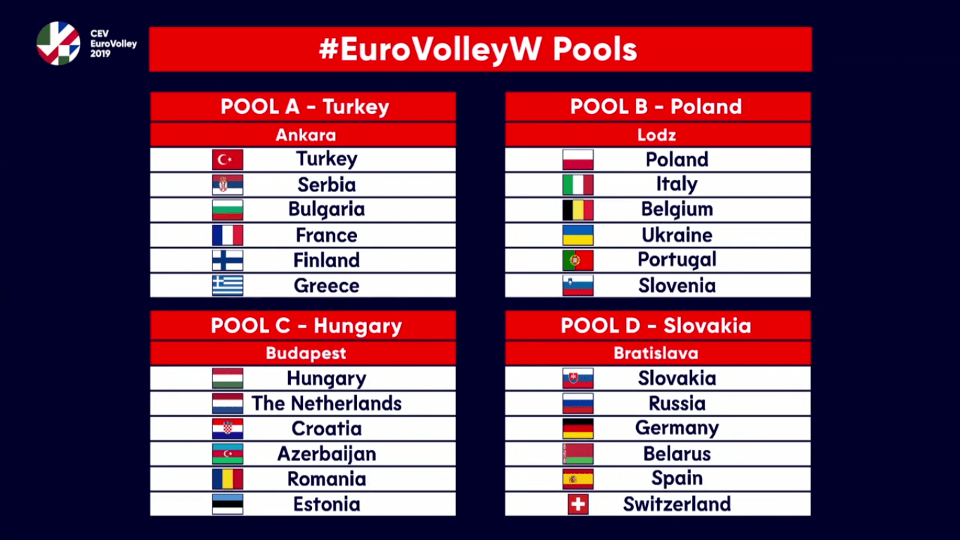 Tricolorele au fost repartizate în Grupa C la Campionatului European de volei feminin 2019, alături de naționalele Ungaria, Olanda, Croția, Azerbaijan și Estonia, potrivit tragerii la sorţi efectuate miercuri seara, la Istambul.