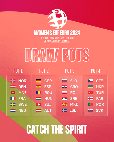 EHF a anunțat urnele pentru tragerea la sorți a grupelor turneului final al Campionatului european feminin care va avea loc în perioada 28 noiembrie-15 decembrie în Austria, Ungaria și Elveția.