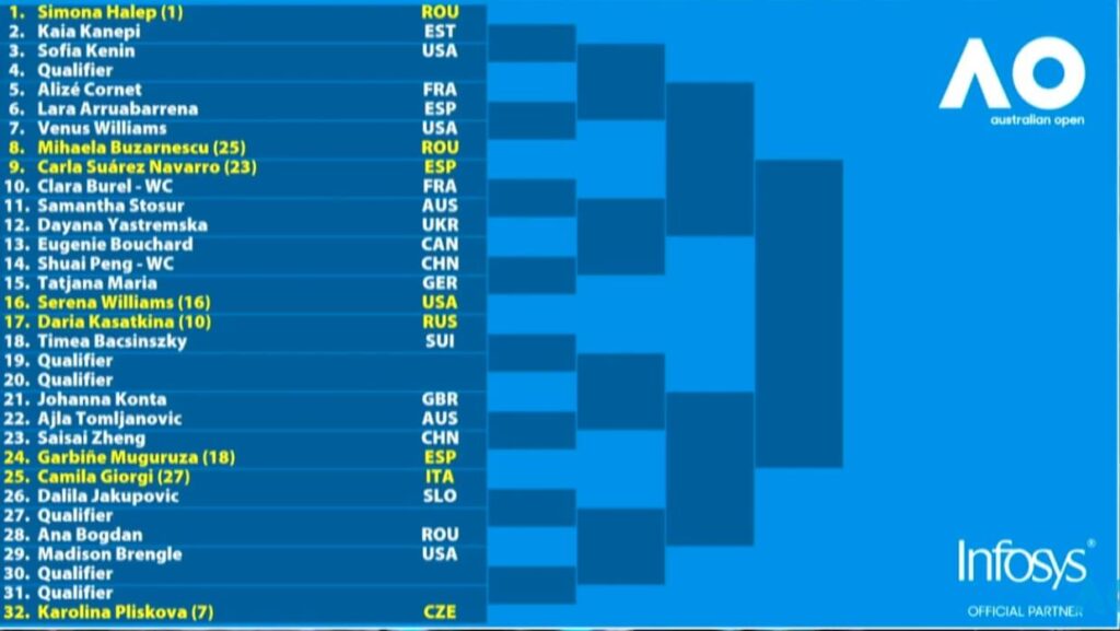 În turul doi, Simona ar putea juca cu Sofia Kenin, 56 WTA, sau cu o jucătoare venită din calificări. În turul al treilea ar putea da peste Venus Williams, 37 WTA, sau Mihaela Buzărnescu, 25 WTA. În turul 4, Simona ar putea-o întâlni pe Serena Williams, în sferturi pe Karolina Pliskova, Garbine Muguruza sau Daria Kasatkina, iar în semifinale, adversară i-ar putea fi Naomi Osaka sau Elina Svitolina.