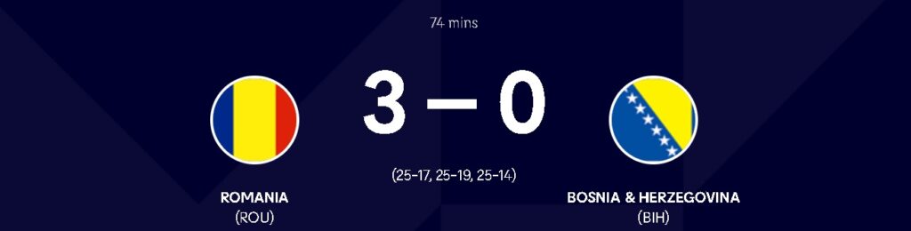 Selecționata de volei masculin a României a învins miercuri, la Galaţi, reprezentativa Bosniei şi Herţegovina, scor 3-0, în al treilea meci al grupei B din Liga Europeană de Argint (Silver League).