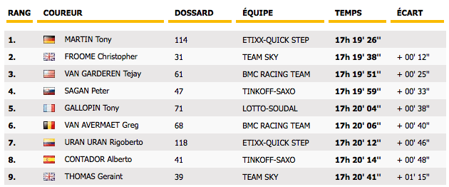 Tricoul galben rămâne în posesia rutierului german Tony Martin de la echipa Etixx-Quick Step.