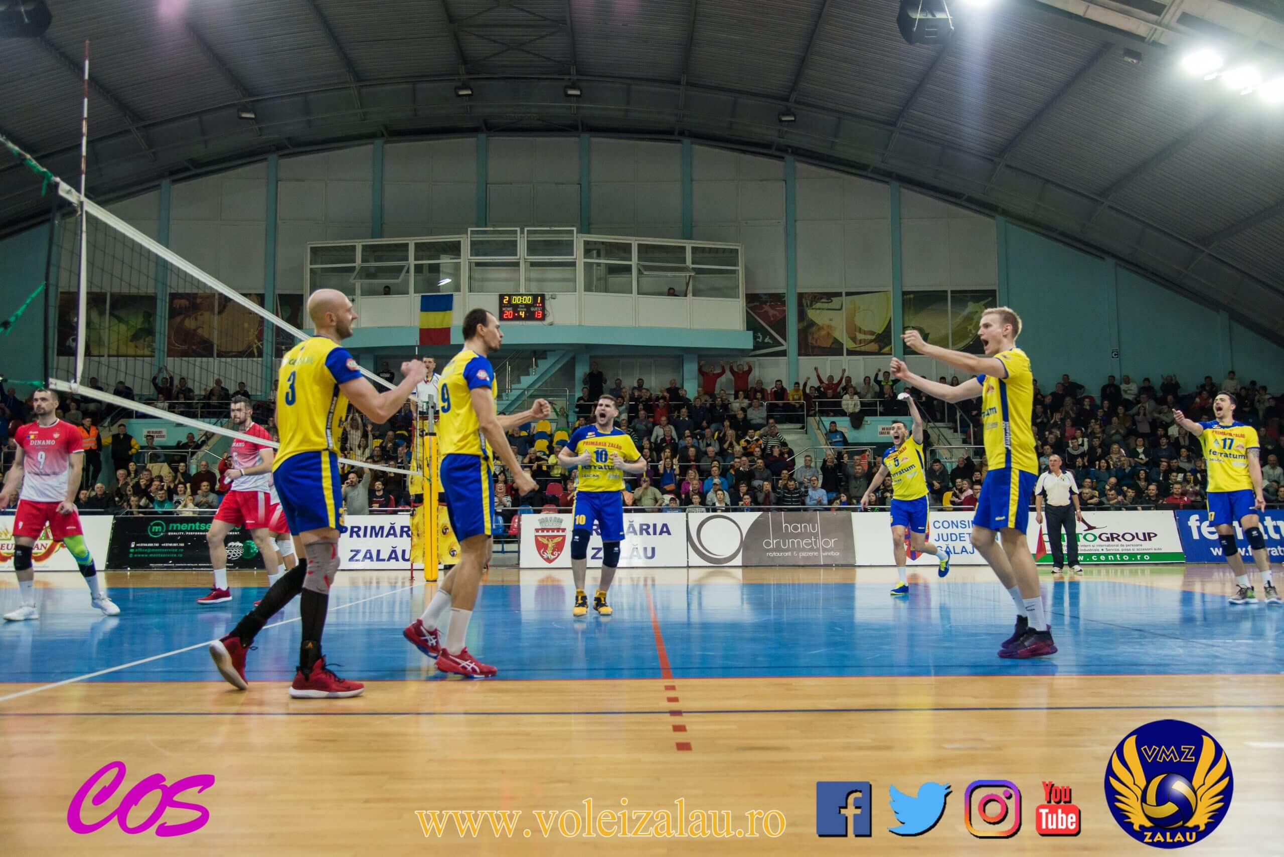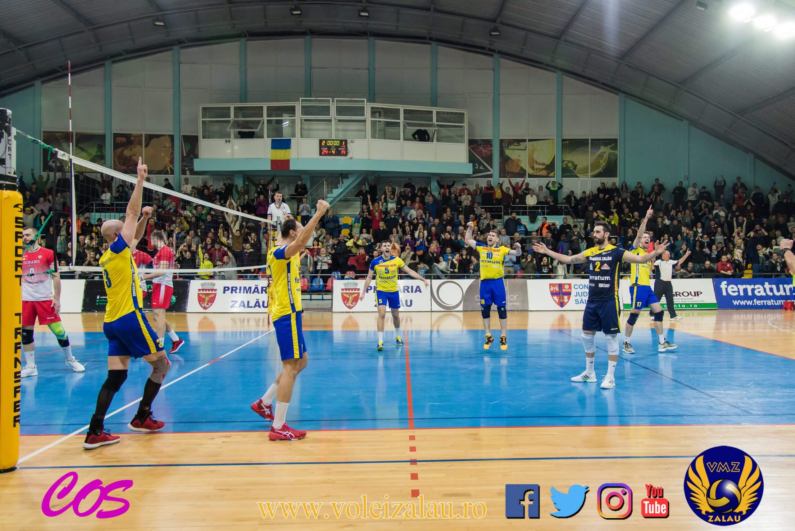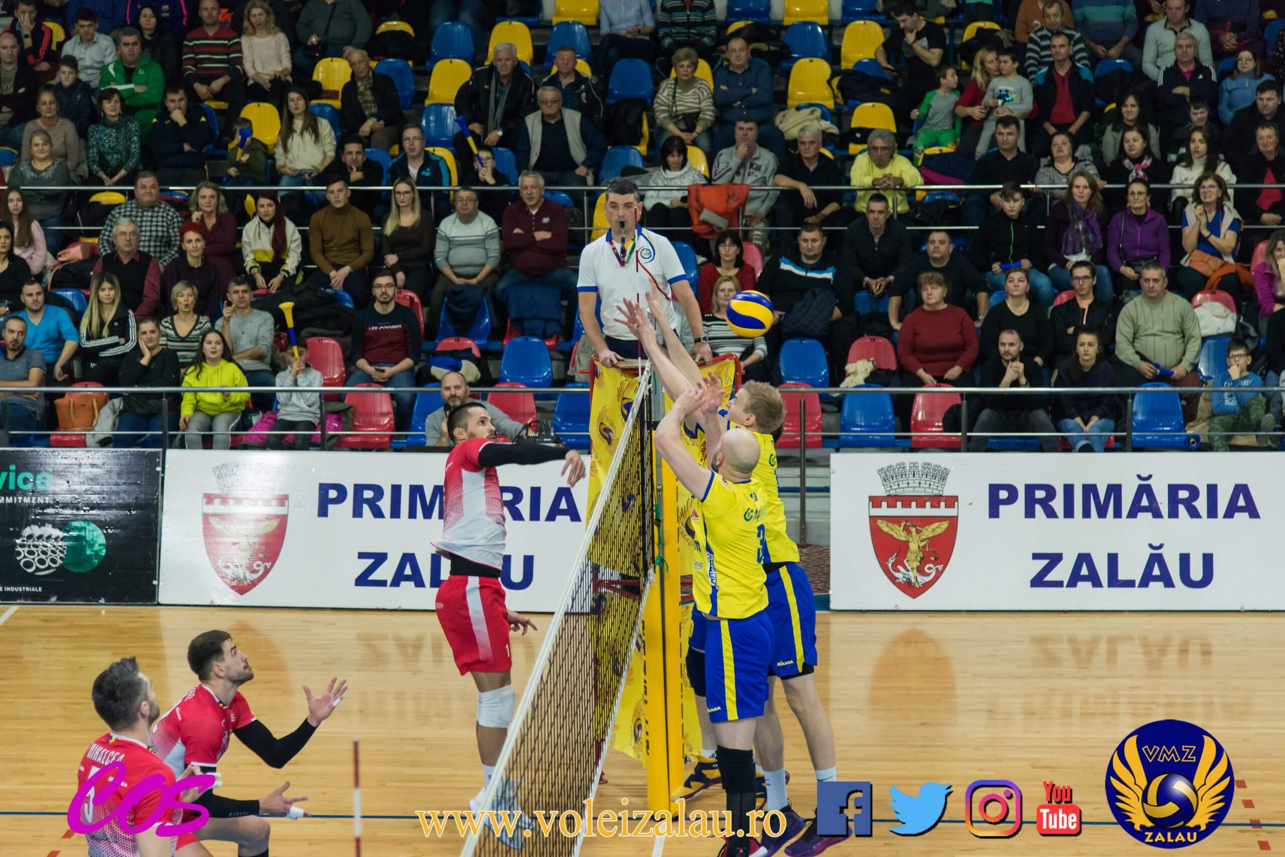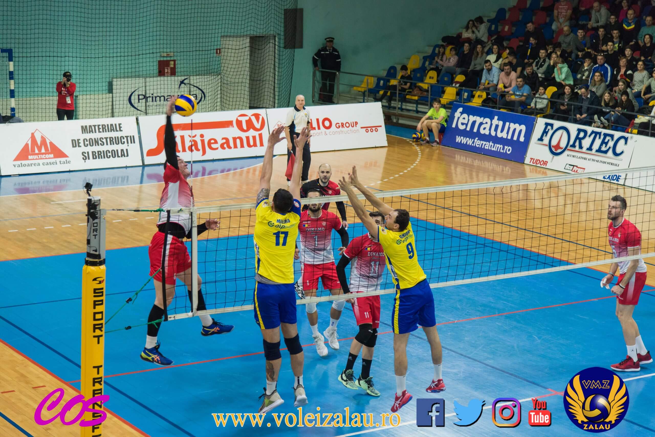 Volei Municipal Zalău a câștigat trei puncte în urma duelui cu Dinamo București. Zălăuanii s-au impus după un meci senzațional care a durat o oră și 49 minute de joc, sâmbătă, pe teren propriu, într-un meci din cadrul etapei a XII-a a Diviziei A1 la volei masculin.