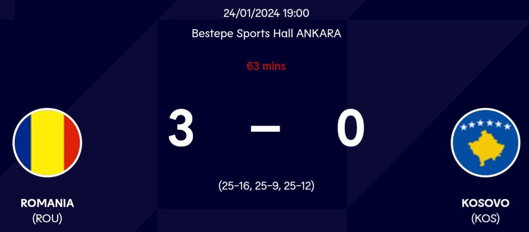 Selecţionata României s-a calificat în semifinalele zonei balcanice din preliminariile Campionatului European de volei feminin Under-20, după ce a învins Kosovo cu scorul de 3-0, miercuri, la Ankara, în Grupa A.