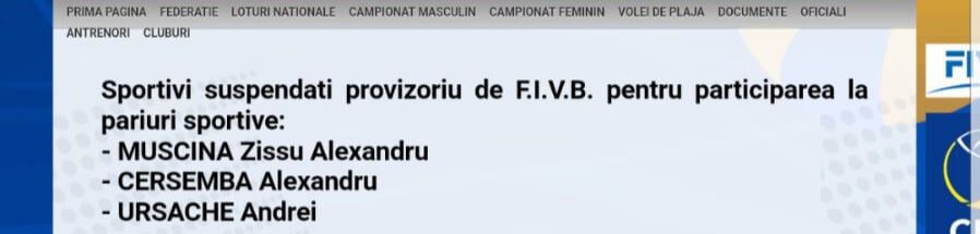 După ce am publicat articolul despre această speță pe data de 1 noiembrie 2017, (Jucător de volei sancționat de FIVB protejat de FRVolei), pe site-ul FRVolei a apărut abia după cinci zile de tăcere, mai exact pe data de 6 noiembrie 2017 că cei trei jucători sunt suspendați, confirmând astfel că FIVB a sancționat jucatorii. Acest caz a rămas voalat!